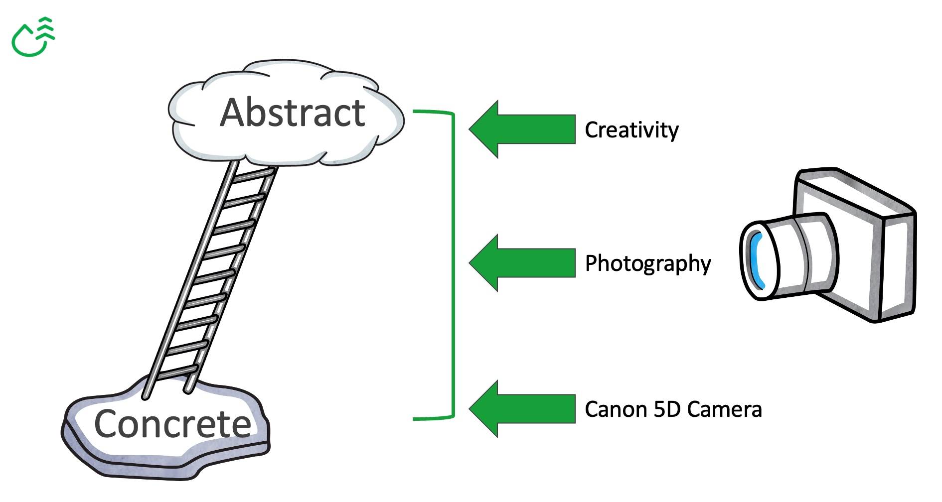 When planning a presentation or classroom lesson, you can use the ladder to consider your points. You might ask yourself: Am I being too abstract? If so, move down the ladder to more concrete examples.